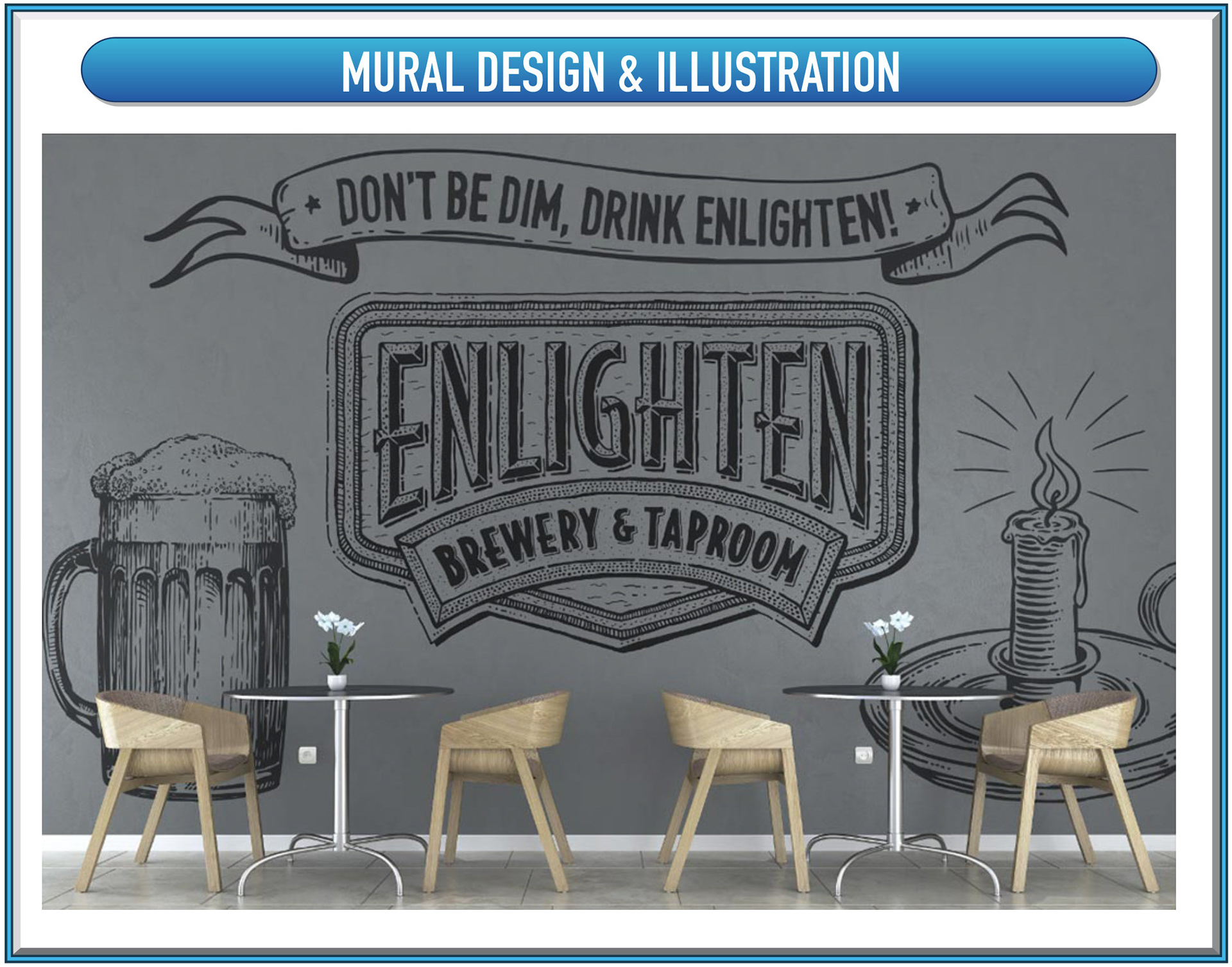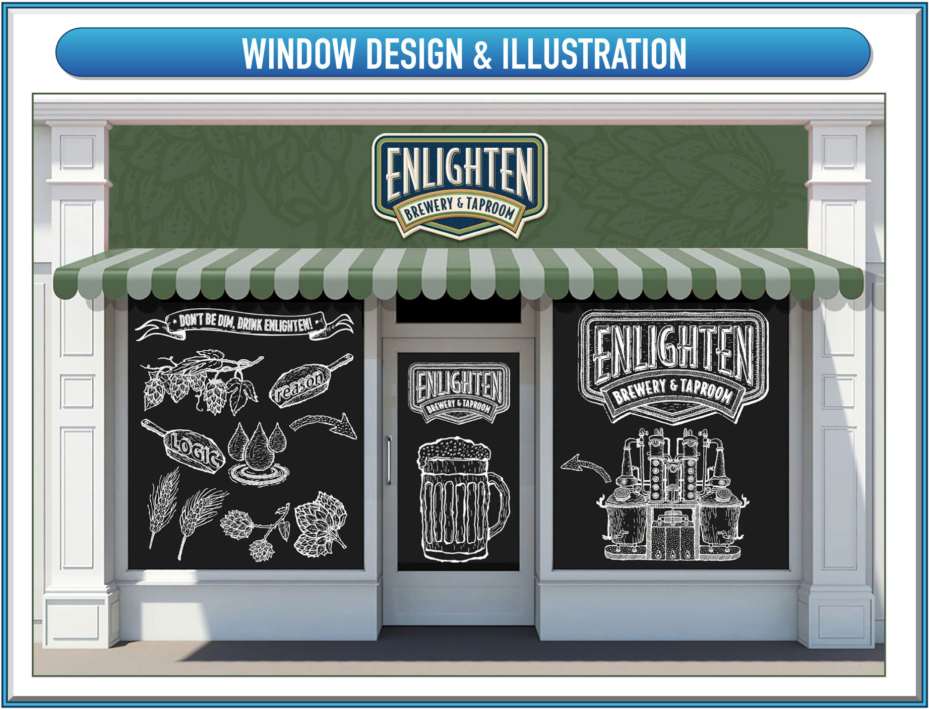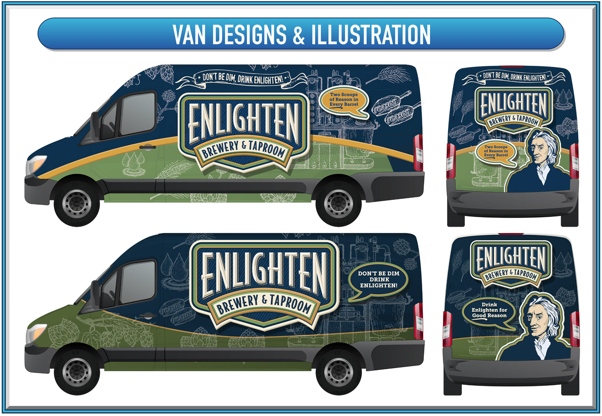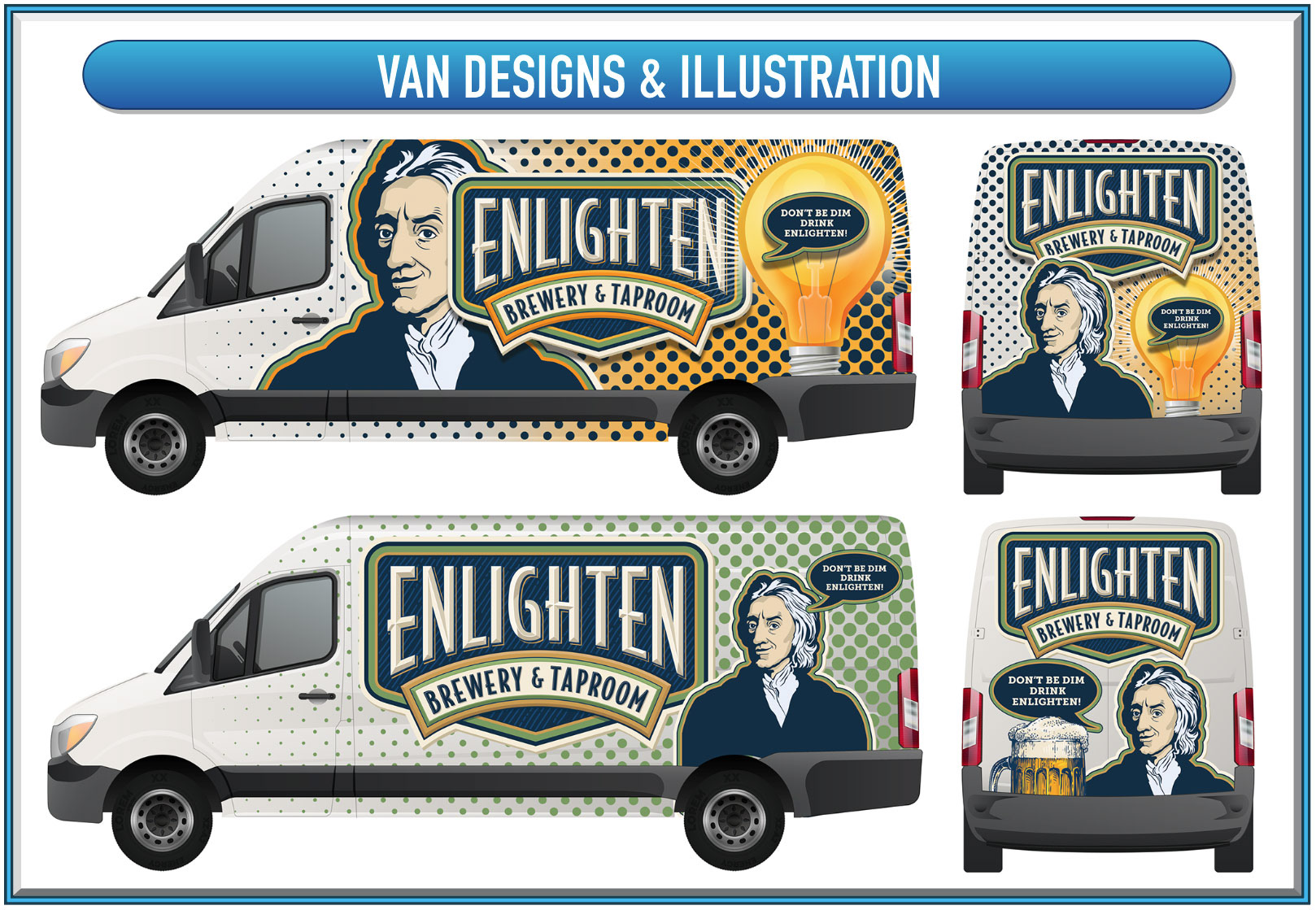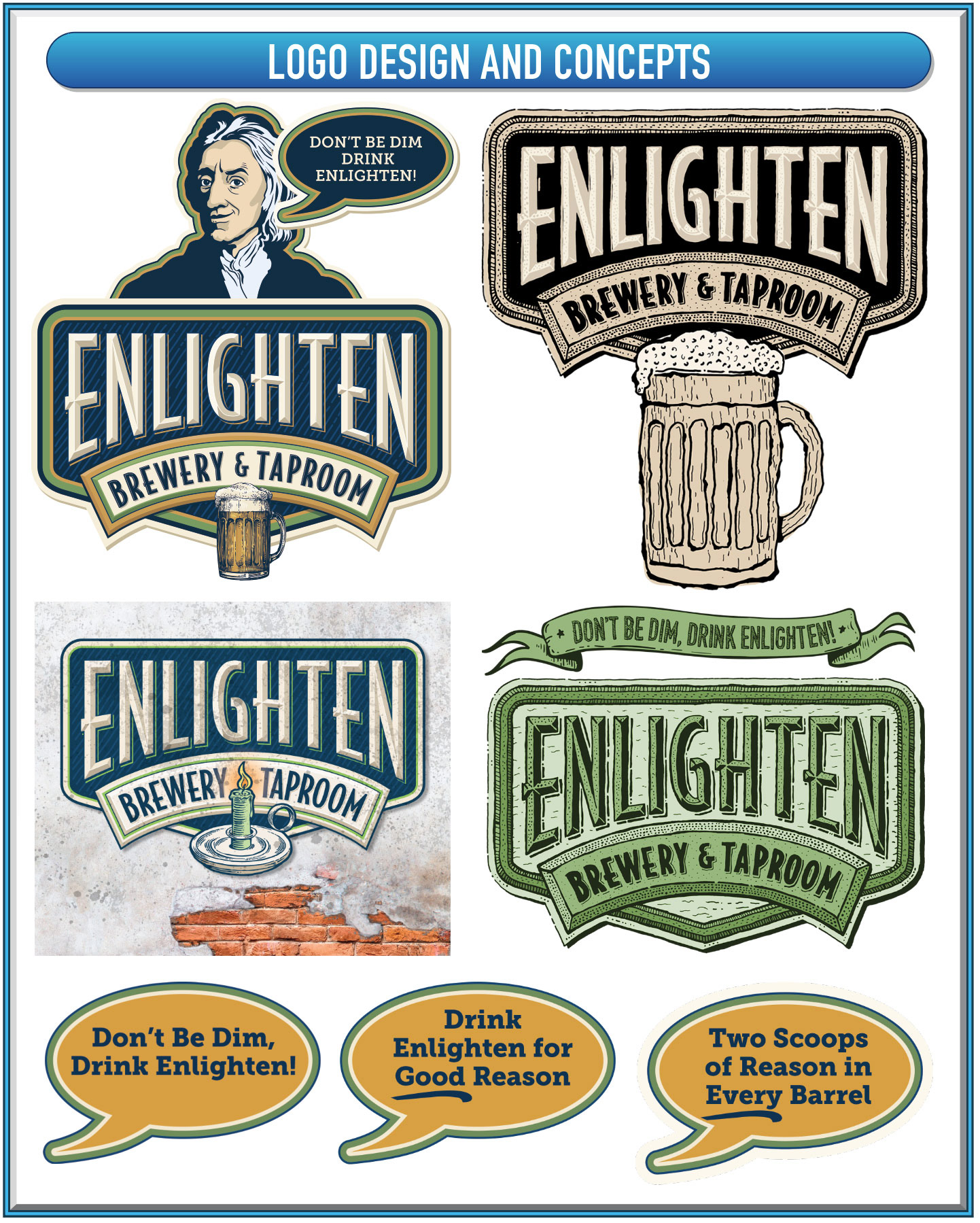 These are some concept designs for a fictional brewery named after our company Enlighten Graphics.